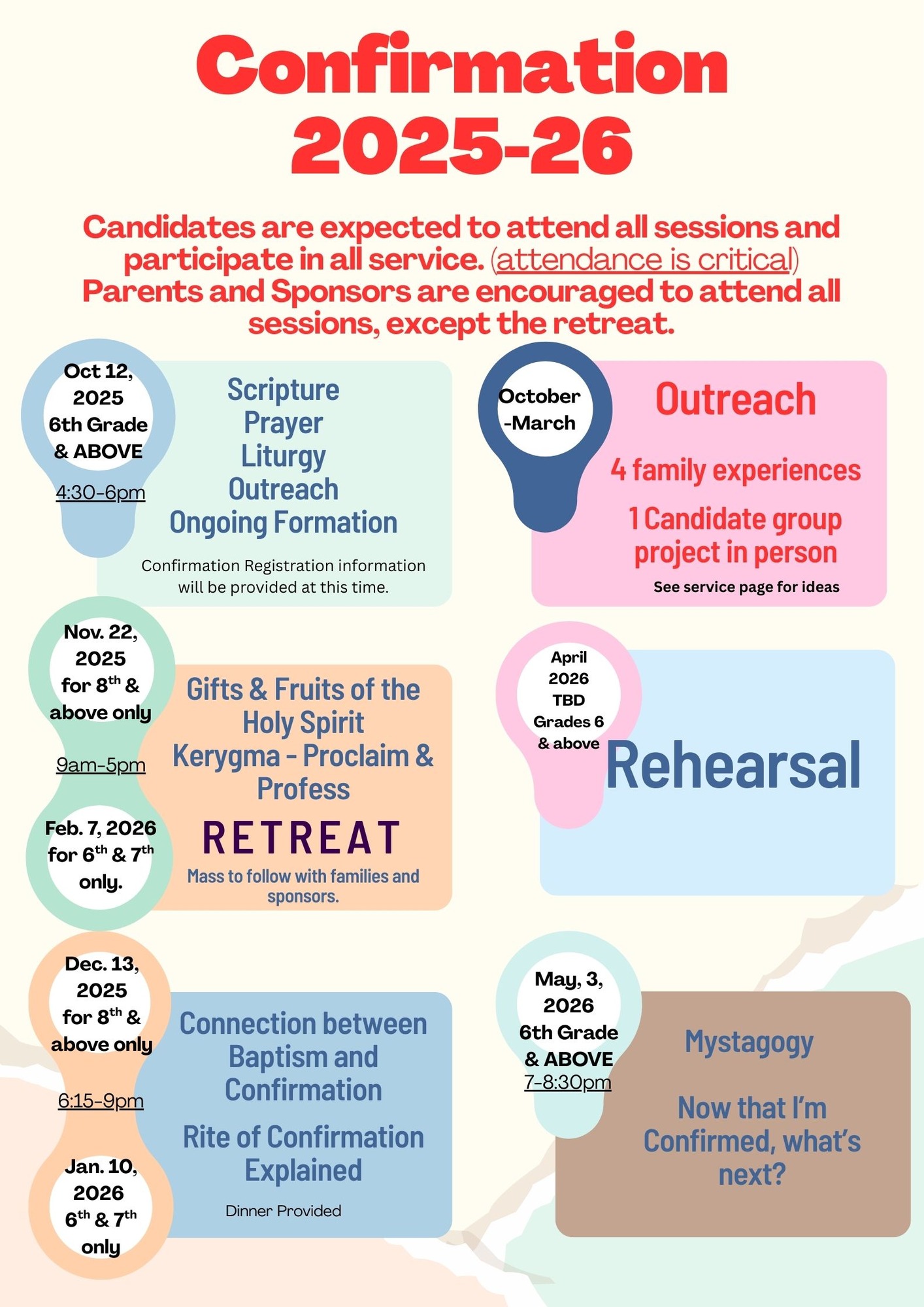 The celebration of Confirmation for adult Catholics is celebrated in the Archdiocese twice a year. The preparation program includes a minimum of three meetings for discernment, spiritual formation, and catechesis. For more information, please contact Barbara Anderson in the parish office at 410-592-6206 x 106 or email andersonbh@sjehydes.org.